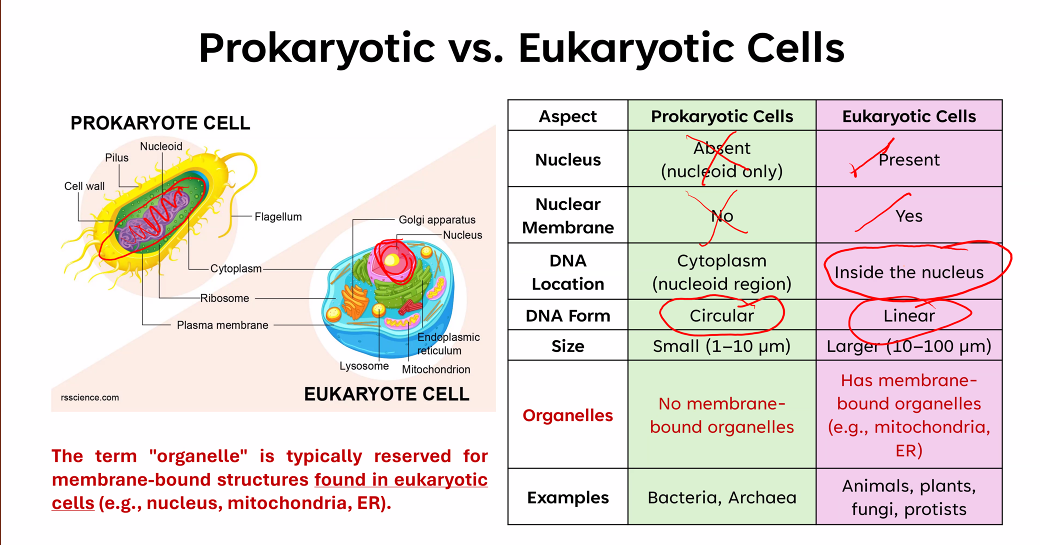 Cells: - Basic unit of life - All living things are made of cells (doesn’t need to be multicellular—things can have only one cell and be a living being e.g. prokaryotic and eukaryotic cells.)