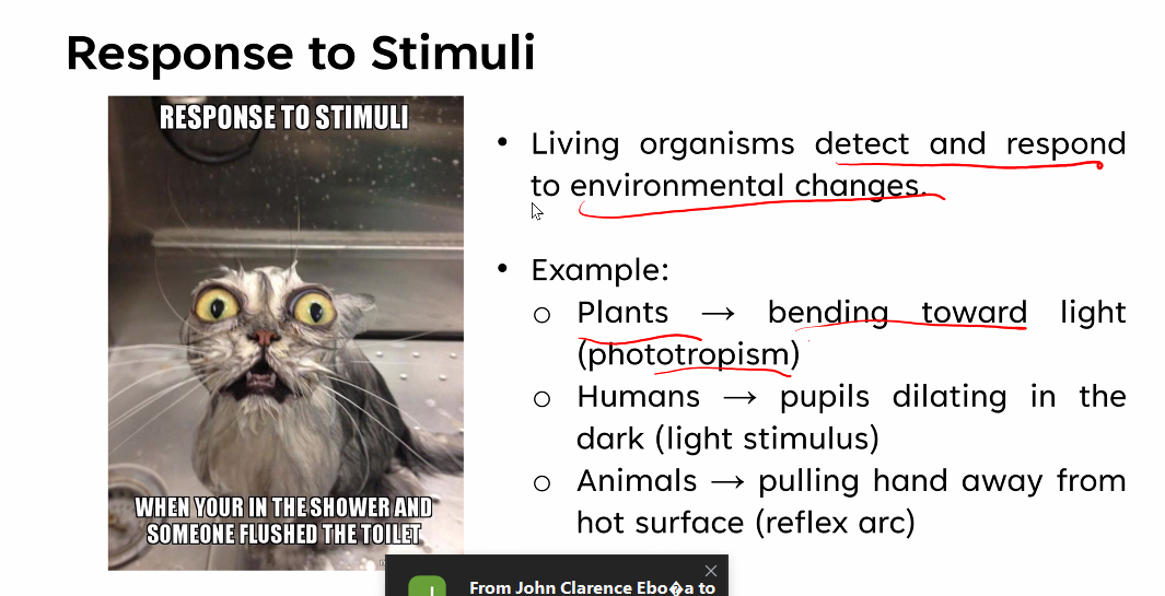 Living organisms detect and respond to environmental changes