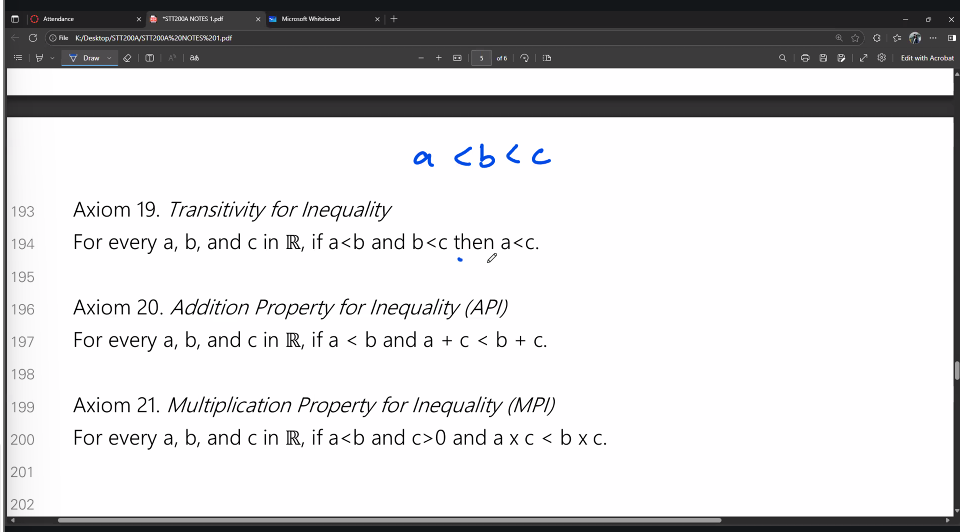 Transitivity for Inequality: For every a, b, and c in R, if a < b and b < c then a < c . Basically, a < b < c .