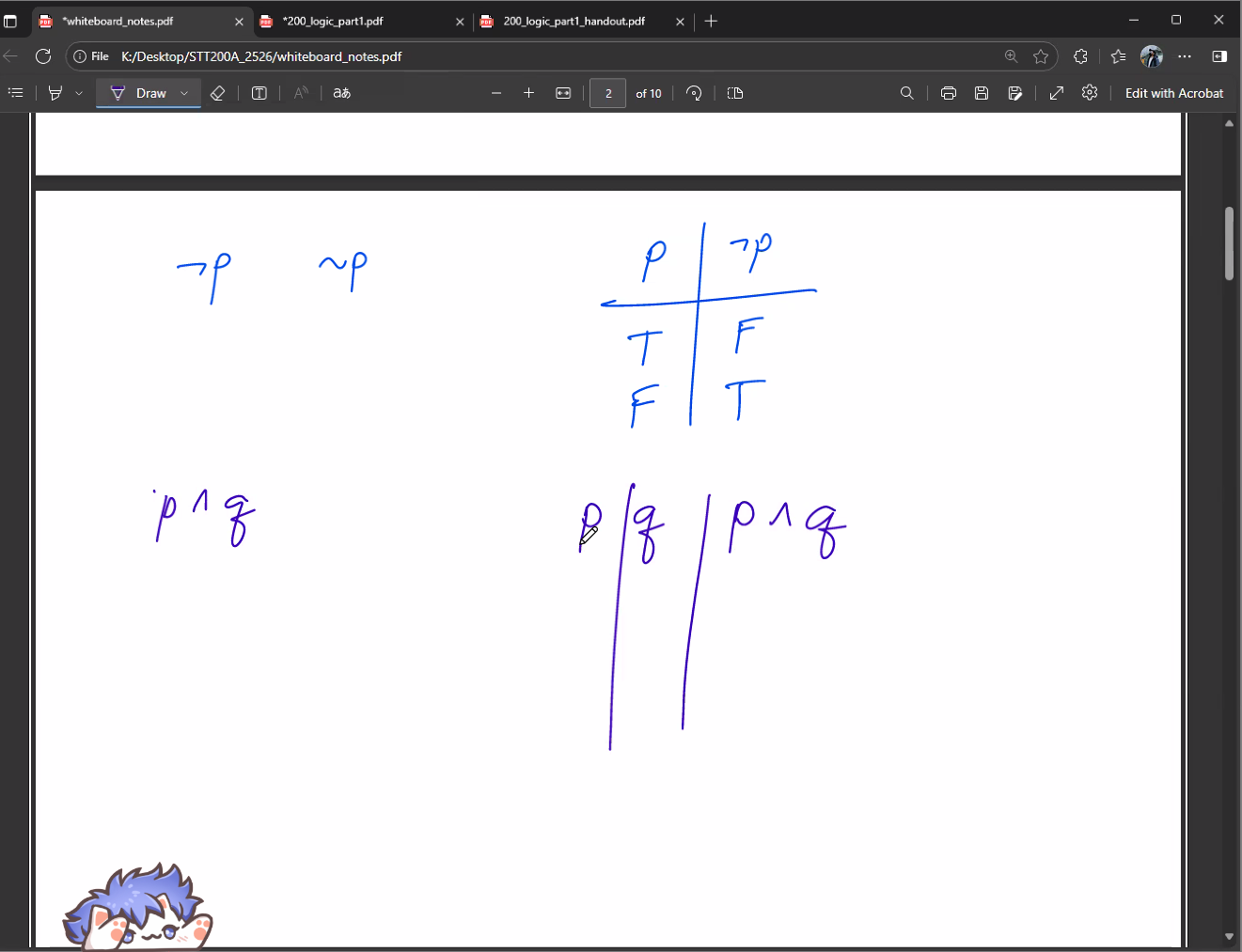 - Negation of p: , or ~, read as not p or it is not the case that p